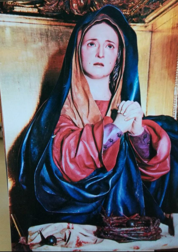 La Virgen María resplandeciente en su bondad, en su compasión, en su AMOR, considero que la Primera que Siente la Reparación hacia su bendito Hijo Jesús en lo más profundo de su Ser. Siempre estuvo al lado de Nuestro Señor Jesús. Tanto Jesús como Nuestra Madre Celestial siendo completamente inocentes fueron ofrendas permanentes con el cáliz del sufrimiento debido a los pecados de la humanidad.