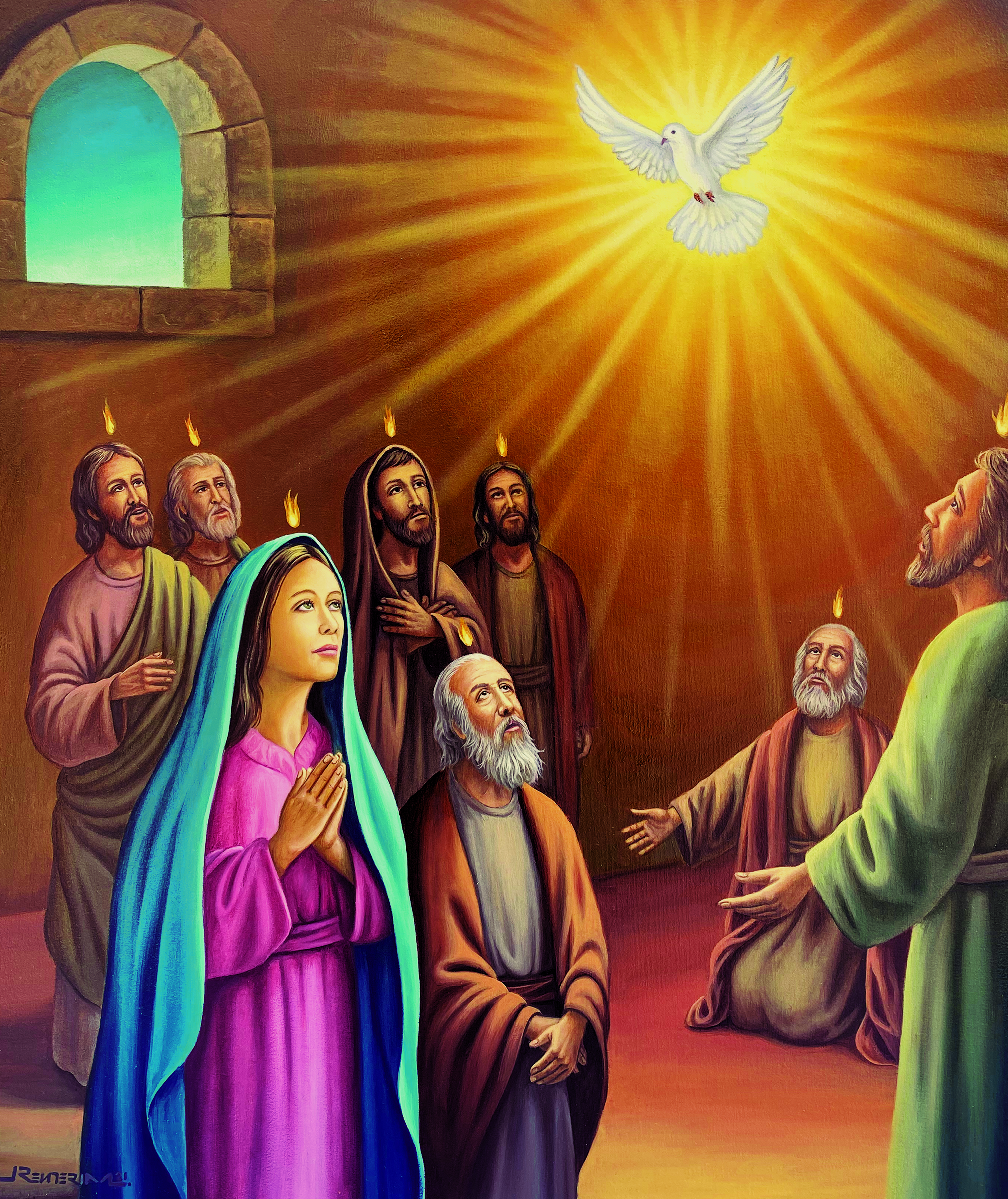Recibid ¡oh Espíritu Santo!, la consagración perfecta y absoluta de todo mi ser, que os hago en este día para que os dignéis ser en adelante, en cada uno de los instantes de mi vida, en cada una de mis acciones, mi director, mi luz, mi guía, mi fuerza, y todo el amor de mi corazón.
