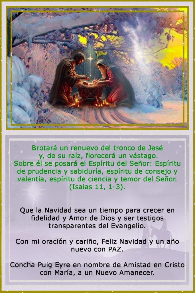 Os mando la felicitación de NAVIDAD con toda mi ilusión y cariño. Jesús VIENE A ESTAR CON NOSOTROS SE QUEDA EN NUESTRO CORAZÓN!